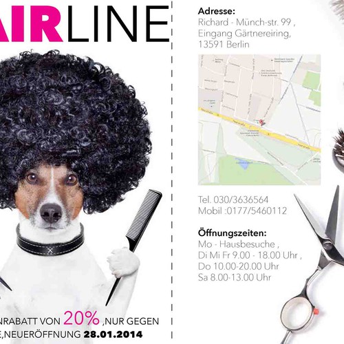 Auffallendes Flyerdesign für Neueröffnung eines Friseur | Postkarten, Flyer & Printdesign Wettbewerb